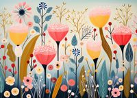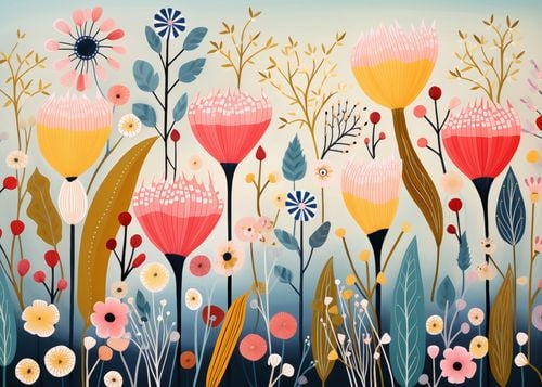Plakat z serii abstrakcja zatytułowany Ogród Marzeń to urokliwa kompozycja, która przyciąga wzrok żywą paletą barw i abstrakcyjnym przedstawieniem natury. Każda kwiatowa forma jest tu celebracją różnorodności i piękna, od wyrafinowanych, wysmukłych pędów po pełne uroku, rozłożyste płatki. Subtelne detale, takie jak kropki na liściach czy delikatne linie na płatkach, dodają dziełu głębi i tekstury. Ta bujna, kwitnąca łąka jest wizją natury, która przenosi widza w świat fantazji i spokoju. Idealnie sprawdzi się jako centralny punkt w nowoczesnych przestrzeniach mieszkalnych, w pokojach relaksu, a także w przestrzeniach komercyjnych, takich jak spa, salony piękności lub poczekalnie, gdzie wprowadzi atmosferę spokoju i harmonii.