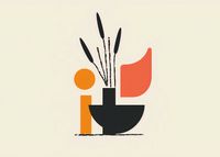 Plakat z serii boho zatytułowany Szeroka Czerń.Na plakacie widnieje ilustracja o abstrakcyjnym, geometrycznym stylu. Kompozycja składa się z szeregu prostych kształtów i bloków kolorów. Centralnym elementem jest czarny, szeroki wazon, z którego wyrasta bukiet stylizowanych, czarnych roślin. Obok wazonu znajduje się pionowy, pomarańczowy prostokąt i mniejsze kształty: koło w kolorze pomarańczowym i zaokrąglony kształt w odcieniu koralowym. Całość osadzona jest na jasnym tle, a kompozycja balansuje między prostotą formy a bogactwem wizualnym wynikającym z kontrastów i zróżnicowania kształtów.