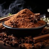 Plakat z serii święta zatytułowany Esencja Aromatu. Mocny akcent na kompozycję przypraw z cynamonem, anyżem i ziarnami pieprzu rozsypanych wokół miski pełnej mielonego cynamonu, tworzący wzór przypominający sztukę natury, wyróżnia się zarówno prostotą, jak i głębią. Delikatny dym unoszący się nad przyprawami dodaje atmosfery ciepła i domowego ogniska. Ten obraz idealnie komponuje się z kuchniami o bogatym, ziemskim wystroju, jak również z eleganckimi restauracjami oferującymi etniczną kuchnię, gdzie podkreśli uczucie przytulności i tradycji.