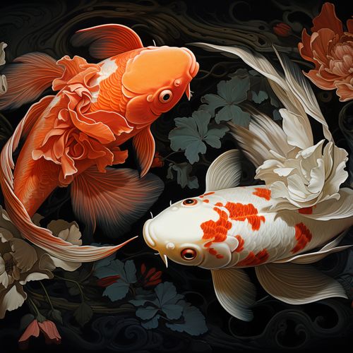 Plakat z serii motywy wschodnie zatytułowany Harmonijny Taniec to arcydzieło, które wyraża subtelność i równowagę przez harmonijne współistnienie natury i sztuki. Dwie ryby koi, jedna w odcieniach płomiennego pomarańczu, druga w pastelowych barwach kremu z akcentami czerwieni, są przedstawione w eleganckim tańcu, który jest tak płynny i gracji jak ruchy baletnicy. Ich delikatne płetwy przypominają falujące tkaniny, unoszące się w wodnym balecie, otoczone przez misternie malowane kwiaty, które dodają całości organicznej głębi. To zmysłowe i prowokujące do refleksji dzieło, które doskonale uzupełni każde wyrafinowane wnętrze, od stylowych kawiarni po intymne przestrzenie prywatne, gdzie design łączy się z naturalnym pięknem.