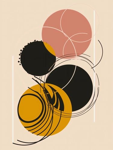 Plakat z serii minimalistyczne zatytułowany Słońce i Cień. Przedstawia on złożoną kompozycję geometrycznych kształtów i liniowych motywów, które razem tworzą wizję słonecznej abstrakcji. Intensywne czernie i złote żółcie kontrastują z delikatnymi odcieniami różu, sugerując grę światła i cienia. Elementy graficzne, takie jak linie i kropki, dodają dynamiki i nowoczesnego charakteru.Ten plakat idealnie nadaje się do nowoczesnych przestrzeni, które cenią prostotę i wyrafinowanie. Jego żywa paleta barw świetnie wkomponuje się w jasne wnętrza, dodając im życia i energii, zarówno w domowych salonach, jak i kreatywnych biurach czy przestrzeniach publicznych.