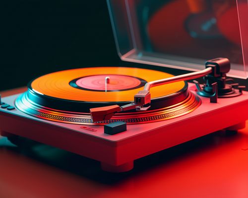 Plakat z serii pop art zatytułowany Retro Granie. Ta ilustracja ukazuje klasyczny gramofon w intensywnych kolorach, z winylową płytą obracającą się na talerzu. Ciepłe odcienie czerwieni i pomarańczy gramofonu kontrastują z chłodnymi, neonowymi akcentami w tle, tworząc nowoczesny, a jednocześnie nostalgicznym klimat. Plakat oddaje hołd złotej erze muzyki winylowej i jest idealnym elementem dekoracyjnym dla miłośników muzyki, dodającym charakteru każdemu wnętrzu, od salonów po muzyczne kąciki czy studia nagrań.
