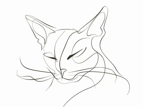 Plakat z serii wnętrza zatytułowany Linijny Kot. Prezentuje minimalistyczny, jednoliniowy rysunek kota. Sylwetka zwierzęcia została zredukowana do kilku płynnych linii, które z gracją oddają kształt głowy, uszu i rysy twarzy, w tym oczy i nos. Styl ten jest znany z tego, że w elegancki sposób uchwyci esencję swojego przedmiotu przy minimalnym użyciu detali. Tło plakatu jest czyste i jasne, co pozwala zarysom kota stać się dominującym elementem. Ten rodzaj sztuki idealnie nadawałby się do nowoczesnego wnętrza, które ceni sobie elegancję i prostotę, i może przyciągać wzrok jako subtelny, ale wyrafinowany element dekoracyjny.