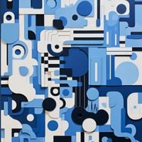Plakat z serii geometria zatytułowany Niebieski Labirynt. Złożona mozaika geometrycznych kształtów i różnorodnych tekstur w odcieniach niebieskiego i bieli układa się w fascynującą kompozycję przypominającą miasto z lotu ptaka. Kontrasty głębokich granatów z pastelowymi błękitami oraz gładkimi i wypukłymi powierzchniami dodają głębi i trójwymiarowości temu dziełu. Świetnie sprawdzi się w nowoczesnych biurach, przestrzeniach designerskich oraz galeriach sztuki współczesnej.