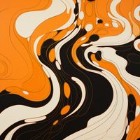 Plakat z serii abstrakcja zatytułowany Tańczący Atrament. Hipnotyzujące fale i krople w tonacjach pomarańczu, bieli i czerni tworzą efekt płynącej cieczy, przypominającą rytmiczny taniec kropli atramentu na papierze. Ciemne elementy wtapiają się w jasne, tworząc harmonijne przejścia i wzory pełne życia. Kontrastujące barwy i kształty dodają obrazowi głębi i dynamiki, intrygując i prowadząc wzrok od jednego elementu do drugiego. Doskonały dla nowoczesnych galerii sztuki, przestrzeni biurowych lub domowych salonów, które chcą dodać swoim wnętrzom nieco abstrakcyjnej elegancji.