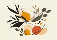 Plakat z serii minimalistyczne zatytułowany Botaniczny Wir. Grafika ta przedstawia elegancką kompozycję stylizowanych elementów roślinnych, które tańczą wśród abstrakcyjnych form i linii. Barwy są ciepłe i przyjemne dla oka, z odcieniami ochry, pomarańczu i czerni, co nadaje dziełu wyjątkową głębię i teksturę. Plakat ten świetnie wpasuje się w przestrzenie, które szukają zarówno spokoju, jak i subtelnej energii. Będzie wyjątkowym dodatkiem do salonów, gabinetów, a nawet jako element wyróżniający w przestrzeniach komercyjnych jak kawiarnie czy butiki. Ożywi wnętrze, zachowując jednocześnie harmonijny i zrównoważony charakter.