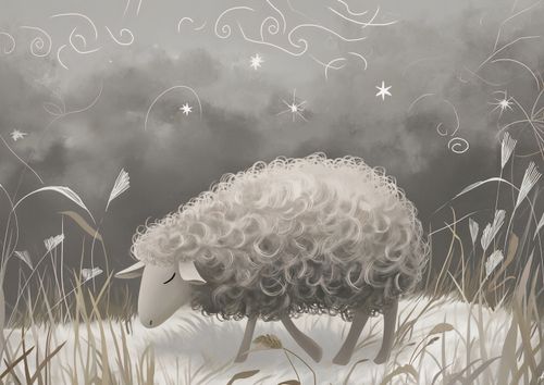 Plakat z serii wnętrza zatytułowany Bujna Owca. Ukazuje on idylliczny obraz owcy o bujnej, puszystej wełnie wśród delikatnej roślinności, z mistycznymi, snującymi się liniami i gwiazdami w tle, tworzącymi atmosferę spokoju i magii. Monochromatyczna paleta barw, z akcentami bieli i szarości, wzmaga uczucie łagodności i odprężenia. Całość kompozycji jest subtelnym przypomnieniem o potrzebie odpoczynku i harmonii z naturą. Plakat ten idealnie nadaje się do przestrzeni zapewniających spokój, takich jak sypialnie, pokoje dla dzieci, miejsca medytacji lub terapeutyczne przestrzenie relaksacyjne. Wprowadzi on do każdego wnętrza element wyciszenia i zachęci do chwil refleksji i spokoju.