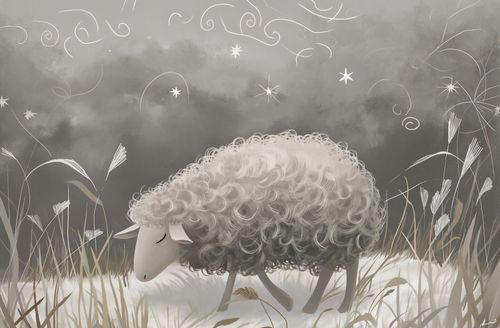 Plakat z serii wnętrza zatytułowany Bujna Owca. Ukazuje on idylliczny obraz owcy o bujnej, puszystej wełnie wśród delikatnej roślinności, z mistycznymi, snującymi się liniami i gwiazdami w tle, tworzącymi atmosferę spokoju i magii. Monochromatyczna paleta barw, z akcentami bieli i szarości, wzmaga uczucie łagodności i odprężenia. Całość kompozycji jest subtelnym przypomnieniem o potrzebie odpoczynku i harmonii z naturą. Plakat ten idealnie nadaje się do przestrzeni zapewniających spokój, takich jak sypialnie, pokoje dla dzieci, miejsca medytacji lub terapeutyczne przestrzenie relaksacyjne. Wprowadzi on do każdego wnętrza element wyciszenia i zachęci do chwil refleksji i spokoju.