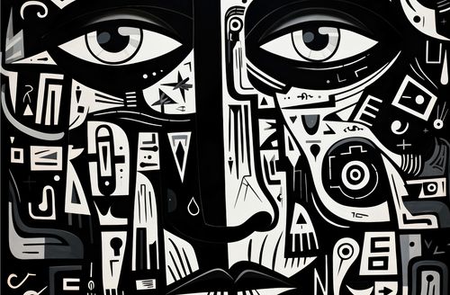 Plakat z serii abstrakcja zatytułowany Labirynt Myśli. Intrygujące oczy spoglądające z głębi obrazu są otoczone złożonymi wzorami i symbolami, które łączą się, tworząc enigmatyczny portret. Czarno-białe barwy kontrastują ze sobą, dodając dziełu intensywności i głębi. Złożoność wzorów symbolizuje skomplikowane myśli i emocje, które kryją się za ludzkim spojrzeniem. Świetnie sprawdzi się w nowoczesnych biurach, galeriach sztuki oraz w przestrzeniach przeznaczonych dla miłośników abstrakcyjnej ekspresji.