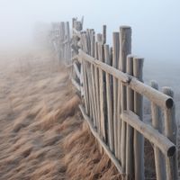 Plakat z serii pejzaże zatytułowany Mgła nad Wydmami. Prezentuje on eteryczny widok na drewniane ogrodzenie, które wiedzie przez poszarpane, suchą trawę wydm. Delikatna mgła otula scenę, nadając jej tajemniczość i spokój, a subtelne odcienie szarości i beżu tworzą uczucie miękkości i ciepła. Ten plakat idealnie oddaje atmosferę wyciszenia i rozmyślania, sprawiając, że jest doskonałym wyborem dla przestrzeni, które mają na celu uspokojenie i relaks, jak spa, pokoje medytacyjne, czy ciche kąciki w domach. To także piękny element dekoracyjny dla wnętrz inspirowanych naturą i spokojem przyrody.