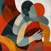 Plakat z serii abstrakcja zatytułowany Objęcia. Artystyczne przedstawienie dwóch postaci w uścisku, z wyraźnymi, płynnymi liniami i bogatą paletą kolorystyczną od ciepłych pomarańczy po chłodne odcienie błękitu i szarości. Grafika ta łączy abstrakcję z emocjonalną głębią, sugerując intymność i ciepło relacji. Idealnie komponuje się w nowoczesnych przestrzeniach mieszkalnych lub jako wyrazisty akcent w kreatywnych biurach. Ten plakat może również znaleźć miejsce w galeriach sztuki oraz w pomieszczeniach przeznaczonych do medytacji i refleksji, zachęcając do zastanowienia nad ludzką bliskością i uczuciami.