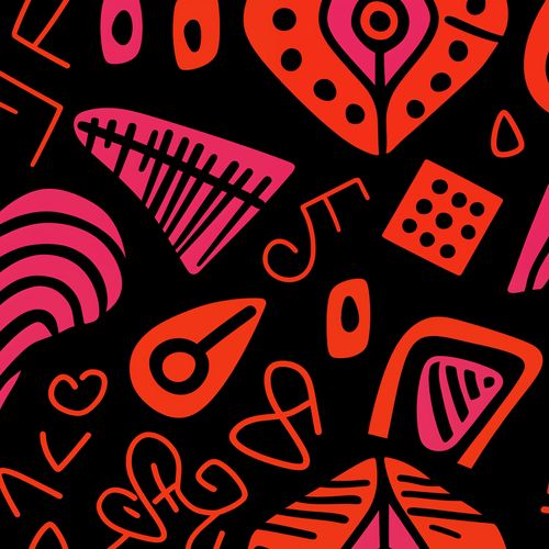 Plakat z serii abstrakcja zatytułowany Rytm Wzorów - pulsujące, energetyczne dzieło sztuki, które łączy w sobie abstrakcyjne kształty i wibrujące kolory na ciemnym tle. Wzory są zainspirowane żywiołowością muzyki i miejskiego życia, z nutami, sercami i innymi elementami graficznymi, które tworzą rytmiczny i wizualnie hałaśliwy krajobraz. Intensywne czerwienie i różowe akcenty kontrastują z głęboką czernią, nadając plakatowi wyrazistość i mocny charakter. To idealny wybór do nowoczesnych przestrzeni, które celebrują kreatywność i dynamiczność, takich jak studia projektowe, muzyczne bary czy urbanistyczne lofoty.