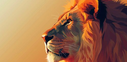 Plakat z serii abstrakcja zatytułowany Król. Ukazuje profil lwa, króla zwierząt, w stylizowanej, cyfrowej ilustracji z wykorzystaniem żywych, ciepłych barw przypominających zachód słońca. Silny kontur głowy lwa, w połączeniu z bogatą kolorystyką jego grzywy, tworzy potężny wizerunek godności i siły. Gradiacja barw od złota po głęboki pomarańcz i brąz nadaje tej grafice dynamizmu i życia, a delikatne przejścia kolorów podkreślają majestatyczny charakter tego wspaniałego zwierzęcia. Plakat ten idealnie wpasuje się w przestrzenie, które pragną podkreślić siłę, odwagę i szlachetność, takie jak gabinety, salony, a także przestrzenie wspólne, gdzie może zainspirować i przypominać o dzikiej i nieokiełznanej naturze.
