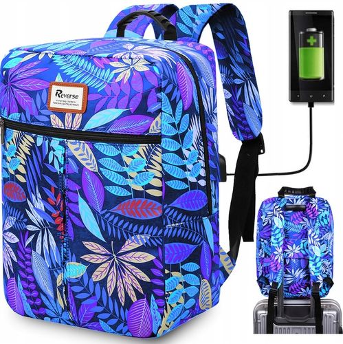Wbudowany port USB umożliwia podłączenie power banku dla wygodnego ładowania urządzeń w podróży. Elastyczny materiał pozwala na złożenie plecaka do kompaktowych rozmiarów podczas przechowywania. Specjalna obejma w tylnej części umożliwia montaż na walizce, ułatwiając poruszanie się po terminalu lotniska.