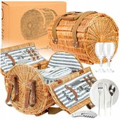 ✔️ Kompletnie wyposażony dla dwóch osób, z ceramicznymi talerzami, szklankami, sztućcami, kocem piknikowym i termotorbą.