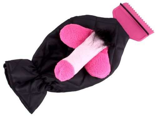Praktyczna skrobaczka do szyb z rękawicą, dającą ciepło podczas wykonywania tej nieprzyjemnej zimowej czynności.