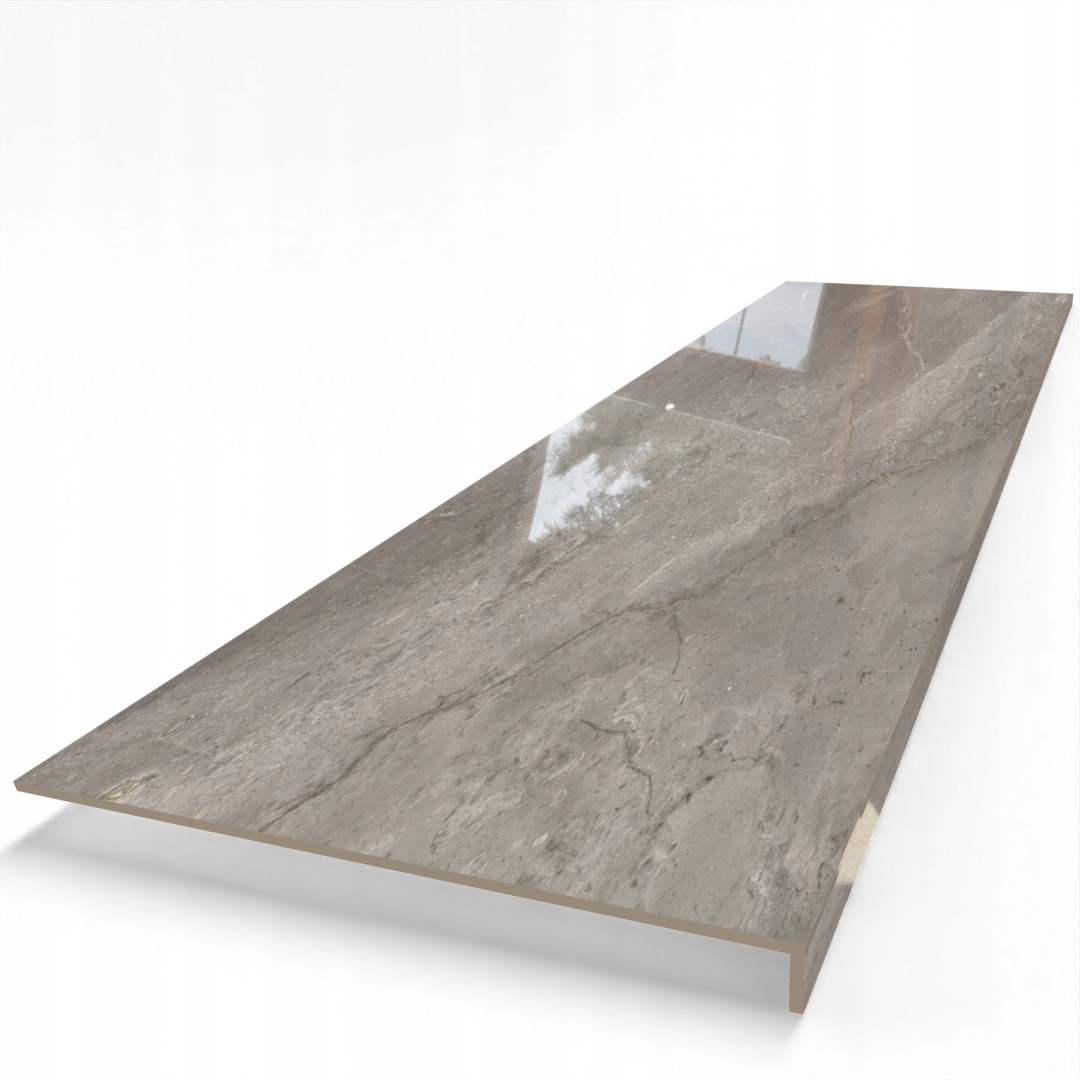Wyjątkowo elegancka stopnica gresowa wykonana z gresu polerowanego w odcieniu naturalnego szarego marmuru. Powierzchnia odbija światło, podkreślając rysunek kamienia i nadając schodom luksusowy charakter. Model bez nacięć – idealny dla osób, które preferują gładkie, minimalistyczne wykończenie stopni.