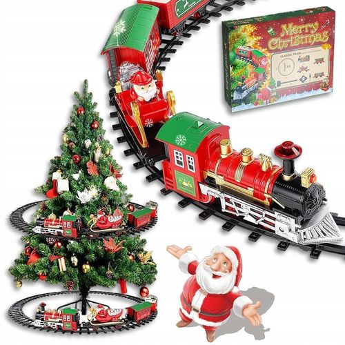 Ten wysokiej jakości świąteczny pociąg z oświetleniem LED i dźwiękiem wyróżnia się nie tylko uroczym, świątecznym designem z wagonikami w kolorach czerwonym i zielonym, ale także precyzyjnymi efektami, które ożywiają choinkę. Zestaw zawiera trzy wagony – lokomotywę z Mikołajem, wagon pasażerski i wagon z prezentami – zapewniając pełną, immersyjną dekorację, która zachwyca każdego sezon.