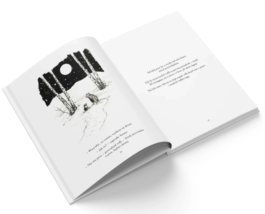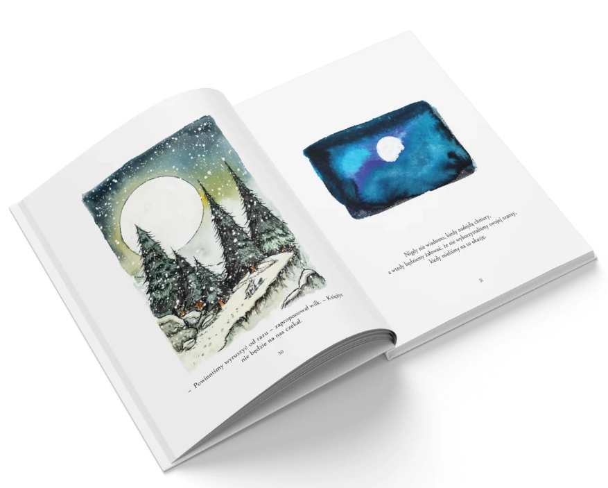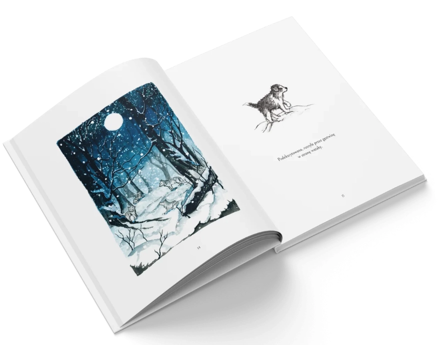 Przemierzając dniami i nocami zimowy krajobraz, szczenię i wilk podążają za księżycem, a każdy etap tej niełatwej drogi przez mroczne lasy, zapomniane miasta i budzące grozę pustkowia jest dla nich lekcją miłości i poświęcenia, przeżywania pełni życia i przyjmowania straty oraz godzenia się ze zmianami, które są nieuniknione.