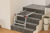 Po złożeniu podest zajmuje zaledwie 6 cm szerokości, co czyni go niezwykle kompaktowym i łatwym do przechowywania. Cztery nóżki z podeszwą z miękkim chwytem zapewniają optymalną stabilność i odporność na poślizg na różnych podłożach, umożliwiając bezpieczne korzystanie zarówno wewnątrz, jak i na zewnątrz pomieszczeń.
