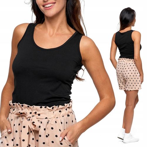 ✔️ Klasyczny krój z okrągłym dekoltem i szerokimi ramiączkami, pozwalający na swobodę ruchów i łatwe komponowanie z różnymi stylizacjami.