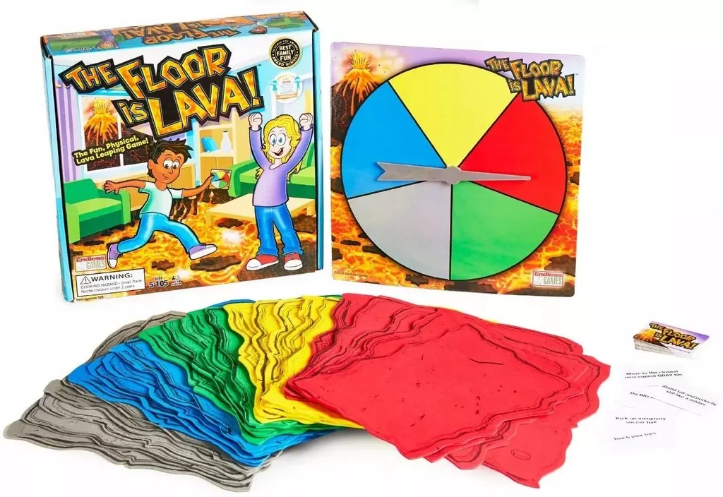 Pozostań ostatnim "żywym" graczem który nie wpadł do lawy! Kto z nas nie grał w tą grę? Tytuł mówi sam za siebie, proste zasady i wspaniała rozgrywka dla dzieci i dorosłych! Zawartość opakowania: • 25 kolorowych "kamieni bezpieczeństwa" z pianki, • 27 kart wyzwań w 8 językach, m. in. w polskim, • 1 kręciołek (ze strzałką i podstawą), • instrukcja gry.