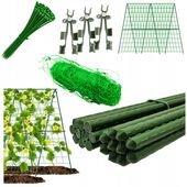 Zestaw składa się z 7 tyczek o długości 150 cm i średnicy 11 mm, 3 ruchomych łączników szczytowych, siatki o wymiarach 2x10 m z odpowiednimi oczkami oraz 100 zielonych opasek. Dzięki temu możesz stworzyć idealne podparcie dla swoich roślin, dopasowując konstrukcję do ich unikalnych potrzeb.