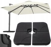 Nasza czarna, czteroelementowa podstawa do parasola wyróżnia się trwałą konstrukcją wykonaną z najwyższej jakości tworzywa sztucznego, odpornego na promienie słoneczne. Każdy element ma solidne wymiary 50 x 50 x 7,5 cm, gwarantując stabilne podparcie dla Twojego parasola ogrodowego, nawet przy większych rozmiarach.