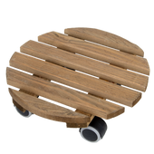 Podstawka okrągła pod doniczkę lub stojak na kwiaty wyposażony w 4 kółka, wykonany z naturalnego drewna sosnowego z certyfikatem FSC. Praktyczny wózek do użytku w pomieszczeniach jak i na tarasie lub ogrodzie.