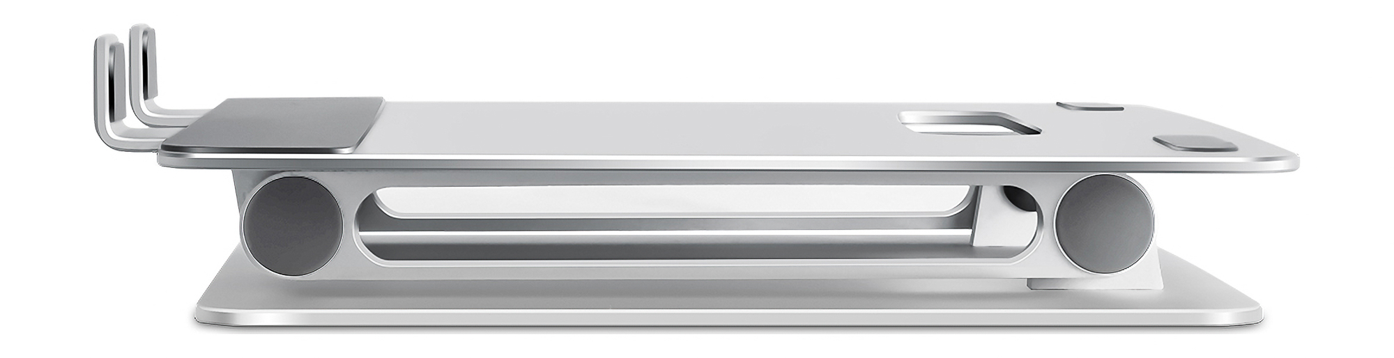 Model Camrock AP-2D został wykonany z wysokiej jakości aluminium, które nie tylko nadaje mu elegancki wygląd, ale także skutecznie wspomaga odprowadzanie ciepła. Podłużny otwór sprawia, że wentylacja przebiega znacznie efektywniej, zapobiegając tym samym przegrzewaniu się sprzętu i poprawiając jego wydajność. Silikonowe okładziny zapewniają stabilność i bezpieczeństwo użytkowania, eliminując ryzyko przesuwania się laptopa lub tabletu podczas intensywnej pracy.