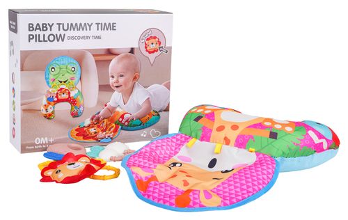 | Wielofunkcyjna sensoryczna poduszka, rogal z zawieszkami dla maluszków od pierwszych dni życia. Poduszka wykonana została z najlepszej jakości materiałów bezpiecznych dla najmłodszych, jest mięciutka i kolorowa. Posiada 3 odczepiane zawieszki, które można przyczepiać też do łóżeczka czy wózka. Na pierwszym etapie życia będzie idealna do ułożenia maluszka na brzuszku. Dla dziecka siedzącego będzie idealnym podparciem, później zaś może służyć jako rogal do fotelika.
