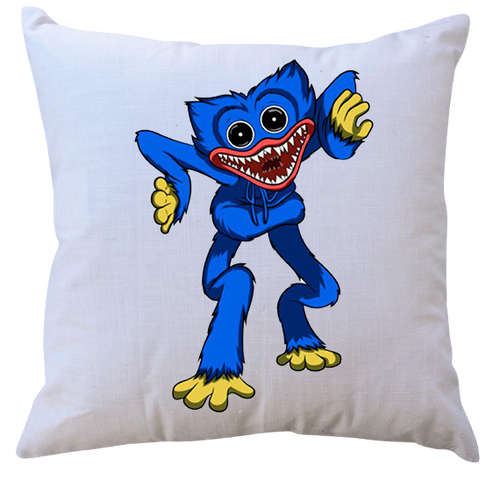 Kolor poduszki: białe tło stanowi doskonałą bazę dla nadruku postaci Huggy Wuggy, co sprawia, że będzie się ona pięknie prezentować w każdym pokoju dziecięcym.