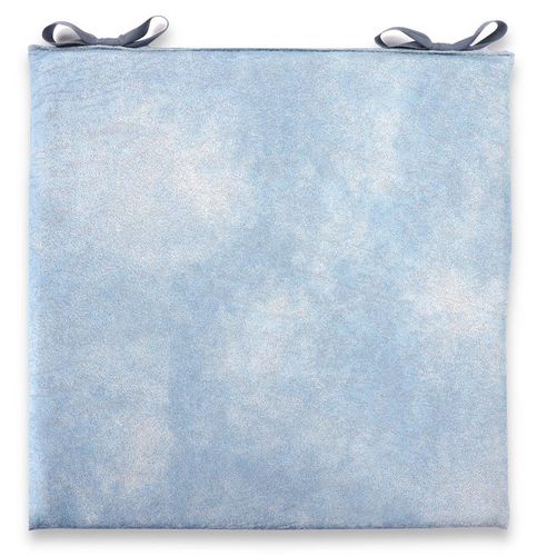 Poduszka na krzesło ogrodowe w rozmiarze 40x40 kwadratowa. Na jednym boku znajdują się 4 sznurki do wiązania na krzesło (długość sznurków to ok. 30 cm). Siedzisko na krzesło jest uszyte z miękkiej tkaniny wzorzystej. Wypełniona jest pianką o grubości 2 cm. Poduszka jest w w odcieniach niebieskiego z drobną strukturą. Poducha na krzesło świetnie sprawdzi się zarówno jako poduszka ogrodowa jak również jako poduszka na krzesło do salonu.