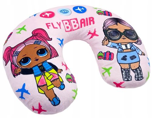 Poduszka podróżna w kształcie rogala jest wykonana z przyjemnego w dotyku materiału i ozdobiona ulubionymi postaciami z LOL SURPRISE.