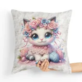 Poduszka ma rozmiar 40 x 40 cm, co czyni ją idealną do ułożenia na kanapie, fotelu lub łóżku. Przód wykonany jest z trwałej i miękkiej mikrofazy z nadrukiem uroczego kotka. Tył uszyty został z niezwykle przyjemnego w dotyku materiału minky, który dodaje całości puszystości i ciepła. To nie tylko dekoracja, ale także świetne oparcie podczas wypoczynku.