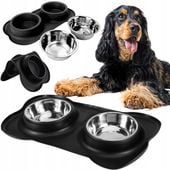 Pojemność 2x450ml pozwala na jednoczesne podanie wody i karmy, zapewniając zwierzęciu stały dostęp do świeżych posiłków. Nowoczesny czarny design harmonijnie wpisuje się w każde wnętrze, a łatwość czyszczenia metalowych misek sprawia, że utrzymanie higieny staje się przyjemnością.