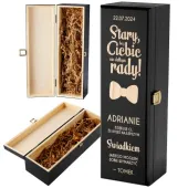Ta wyjątkowa drewniana skrzynka na wino to doskonałe podziękowanie dla świadka. Grawer z personalizowaną dedykacją podkreśli wyjątkowość tego prezentu, a eleganckie wykonanie zachwyci każdego.