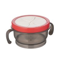 Pojemnik niewysypek na przekąski służy do wygodnego przechowywania przekąsek dla dziecka. Pomaga trenować umiejętności motoryczne- chwytaie i zręcznośc paluszków oraz rozwija samodzielnośc u dziecka. Dzięki specjalnie zaprojektowanej silikonowej pokrywce z nacięciami, dziecko może samodzienie wyjmować przekąski, bez rozsypywania. Doskonały przy rozszerzaniu diety metodą BLW. Szeroki otwór zapewnia łatwość napełniania i utrzymania czystości. Przezroczyste ścianki pojemnika pozwolą na kontrolowanie ilości przekąsek w pojemniku. Po zdjęciu pokrywki produkt może służyć jako miseczka z wygodnymi uchwytami. Idealny w domu, na spacerze i w samochodzie. Pojemność pojemnika to 200ml.