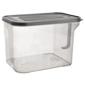 Pojemnik do przechowywania sypkich produktów, wykonany z wytrzymałych materiałów. Posiada szczelną pokrywkę oraz wygodny uchwyt, co zapewni komfort użytkowania. Przydatny w każdej kuchni, także tej profesjonalnej. Pojemnik pozwoli na odpowiednie przechowywanie produktów, wprowadzając ład i porządek do kuchni. Przy zakupie większej ilości produktów możliwość piętrowania ich, jeden na drugim, co zapewni łatwe przechowywanie.