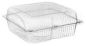 Kwadratowy pojemnik na zawiasach idealny do transportu, przechowywania i ekspozycji ciast. Wykonany z transparentnego PET-u zapewniającego przejrzystość i całkowitą widoczność wypieku. Posiada łatwe i szczelne zamknięcie dzięki któremu produkt zachowuje dłuższą świeżość i przydatność do spożycia. Pojemnik nie nadaje się do podgrzewania w kuchence mikrofalowej.