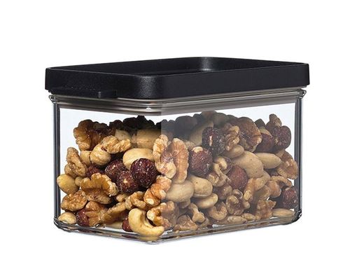 Przezroczyste ścianki pozwalają kontrolować zawartość bez konieczności otwierania pojemnika. Możliwość piętrowego ułożenia pomaga zaoszczędzić i zagospodarować miejsce w lodówce czy też szafce kuchennej.