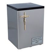 Wykonany w całości ze stali nierdzewnej, pojemnik jest trwały, odporny na uszkodzenia i ma elegancki, nowoczesny wygląd. Wewnętrzne wymiary (wysokość 23.5cm / 9.5", szerokość 16.5 cm / 6,4", długość 16.5 cm / 6,4") są dopasowane do urny tymczasowej o maksymalnych wymiarach: wysokość 23 cm / 9" szerokość 16 cm / 6.3", dzięki czemu kapsuła idealnie mieści się w środku.