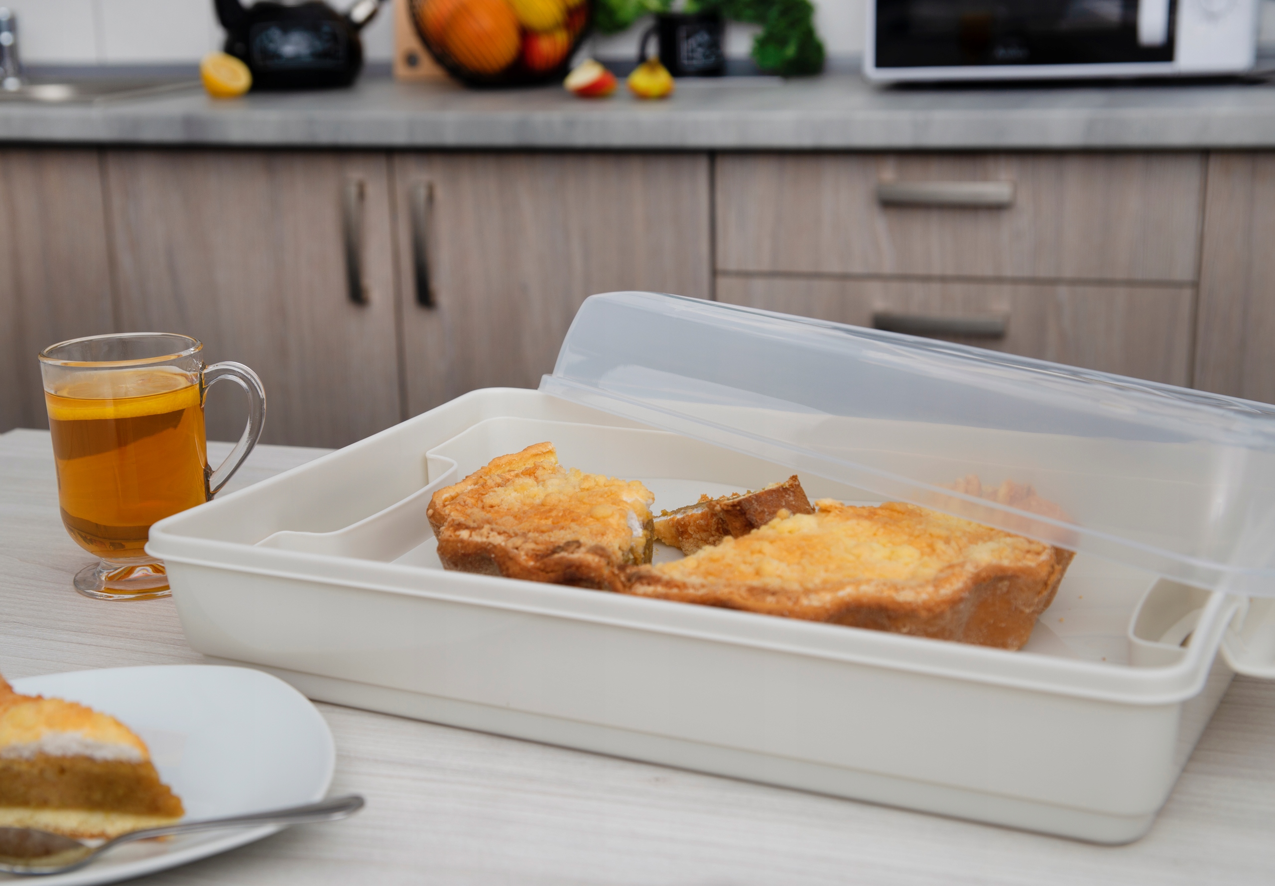 Do pojemnika z powodzeniem mieści się domowej roboty chleb. W produkcie bez obaw można transportować ciasta do szkoły z okazji urodzin dziecka czy do pracy, żeby poczęstować smacznymi wypiekami znajomych z biura.
