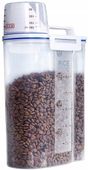 Pojemnik został zaprojektowany z myślą o maksymalnej wygodzie użytkowania. Poręczny uchwyt ułatwia przenoszenie, a miarka umieszczona na nakrętce i pojemniku pomaga w precyzyjnym dozowaniu karmy, dostosowanym do diety Twojego czworonożnego przyjaciela.