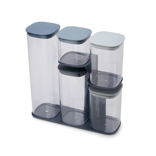 Ten 6-elementowy komplet składa się z 5 pojemników do przechowywania oraz podstawki.