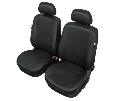 Pokrowce na przednie fotele są z tyłu całkowicie zabudowane, dzięki czemu chroniona jest nie tylko tapicerka ale również oparcie foteli z tyłu. Pokrowce są bardzo łatwe w montażu - prosto się je zakłada a następnie mocuje za pomocą wszytych gumowych uchwytów oraz bezpiecznych, plastikowych klamerek montażowych. Pokrowce na przednie fotele posiadają specjalne otwory na zagłówki.