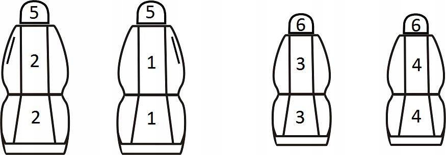 Zestaw pokrowców powstał na podstawie konkretnego modelu auta (rocznika) i pasuje tylko i wyłącznie do podanej powyżej konfiguracji siedzeń - nie jest to komplet uniwersalny. Profil, rozmiar oraz kształt foteli został uwzględniony podczas przygotowywania konkretnego produktu. Wszystkie typowe otwory zostały przygotowane i obszyte. Podłokietniki (o ile występują) zostały uwzględnione - w pierwszym rzędzie są osobne pokrowce, w kanapach zastosowano zamki błyskawiczne w odpowiednim miejscu (brak osobnego pokrowca na podłokietnik). Przednie fotele posiadają wszyte zamki błyskawiczne na plecach umożliwiające na korzystanie z kieszeni, dodatkowo w fotelu kierowcy (w siedzisku) przygotowano praktyczną kieszonkę na drobne przedmioty.