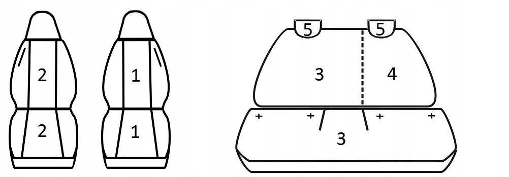 Zestaw pokrowców powstał na podstawie konkretnego modelu auta (rocznika) i pasuje tylko i wyłącznie do podanej powyżej konfiguracji siedzeń - nie jest to komplet uniwersalny. Profil, rozmiar oraz kształt foteli został uwzględniony podczas przygotowywania konkretnego produktu. Wszystkie typowe otwory zostały przygotowane i obszyte. Podłokietniki (o ile występują) zostały uwzględnione - w pierwszym rzędzie są osobne pokrowce, w kanapach zastosowano zamki błyskawiczne w odpowiednim miejscu (brak osobnego pokrowca na podłokietnik). Przednie fotele posiadają wszyte zamki błyskawiczne na plecach umożliwiające na korzystanie z kieszeni, dodatkowo w fotelu kierowcy (w siedzisku) przygotowano praktyczną kieszonkę na drobne przedmioty.