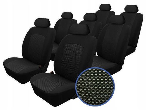 Zestawienie elementów: -pokrowce przednie 4szt -zagłówki przednie 2szt -podłokietnik przód 2szt -pokrowce tylne 10szt -zagłówki tylne 3szt 7 foteli; 7 zagłówków; airbag; 2 podłokietniki; otwory na stoliki w oparciach przednich i tylnych; zakres: 1996-2010