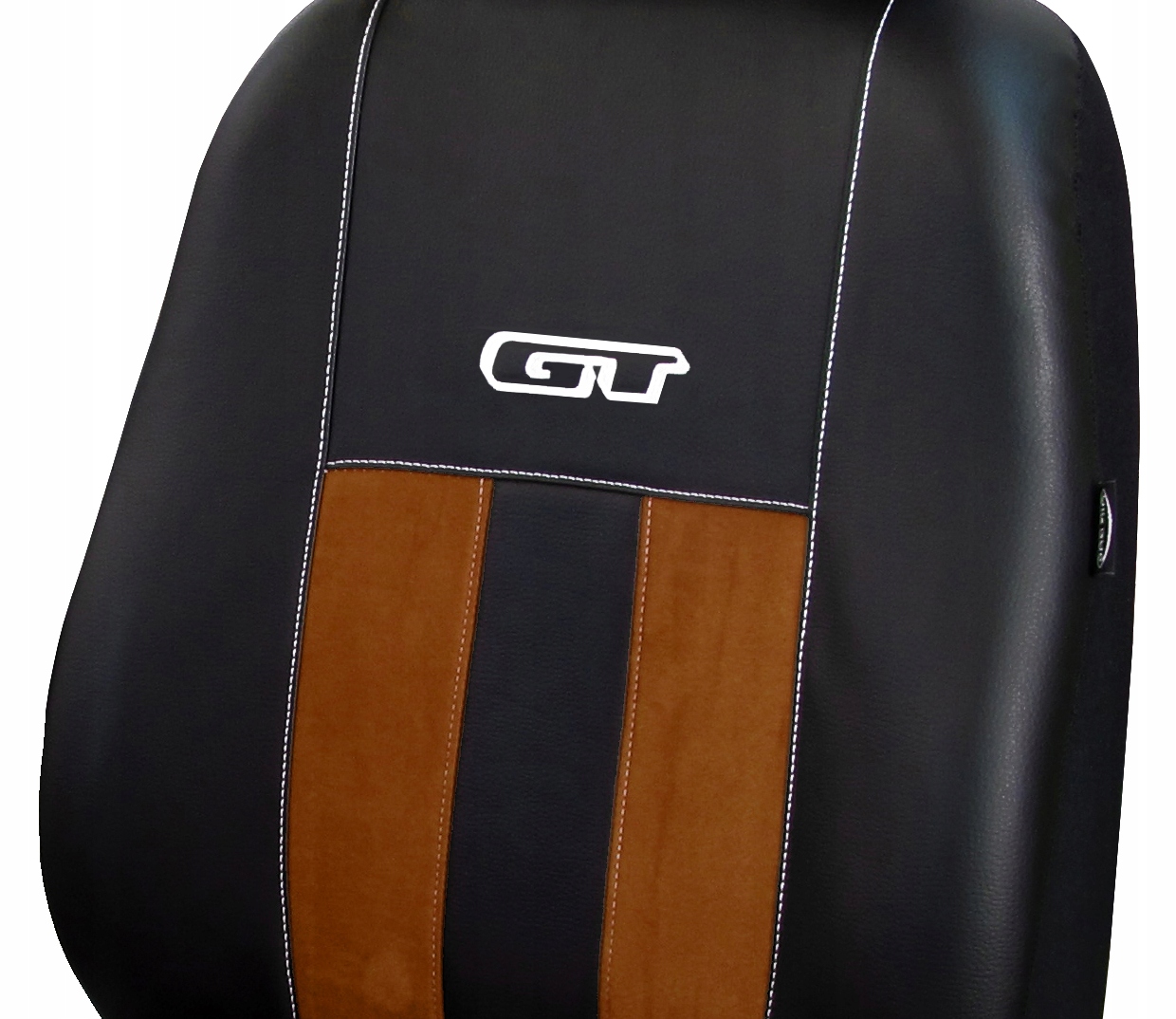Pokrowce serii Grand Turismo GT zostały uszyte w częściach przednich z wysokiej jakości ekoskóry (w kolorze czarnym) oraz alkantary (syntetycznej odmiany zamszu) w pasach środkowych. Materiały są dodatkowo laminowane i podszyte pianką. Dzianina poliestrowa w kolorze czarnym została użyta do pleców, boków oraz zagłówków. Użyta ekoskóra i miękka alkantara są materiałami mocnymi, odpornymi na ścieranie i uszkodzenia mechaniczne, przez co pokrowce są bardzo łatwe w utrzymaniu czystości. W przednich częściach pokrowców przygotowano haft GT, a poszczególne elementy połączono grubym, podwójnym szyciem. Materiał nie farbuje, nie powoduje alergii. Plecy pokrowców przednich foteli są pełne, standardowo zastosowano szew airbag. Polski produkt firmy z ponad 20 letnim doświadczeniem - firma Pokter